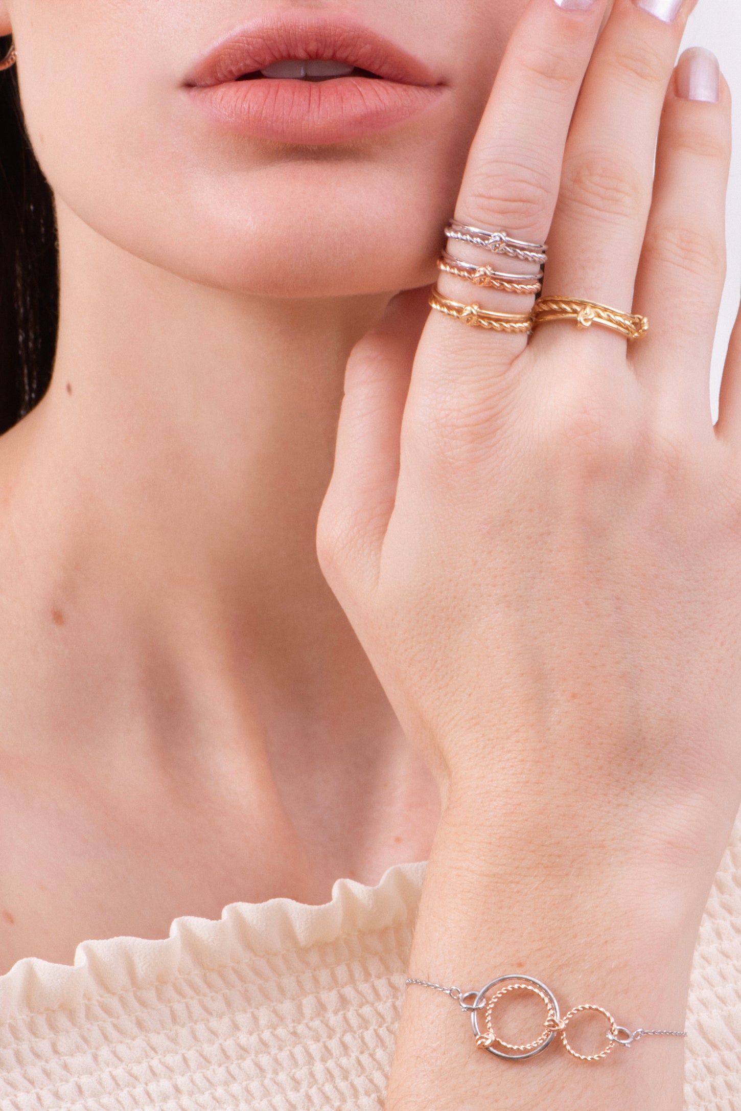 A coleção de joias Vínculos é inspirada na conexão profunda entre pessoas e momentos especiais. Cada peça foi cuidadosamente desenhada para simbolizar laços afetivos e eternizar memórias. Com design elegante e contemporâneo, as joias da coleção combinam sofisticação e significado, tornando-se verdadeiros símbolos de afeto e união.