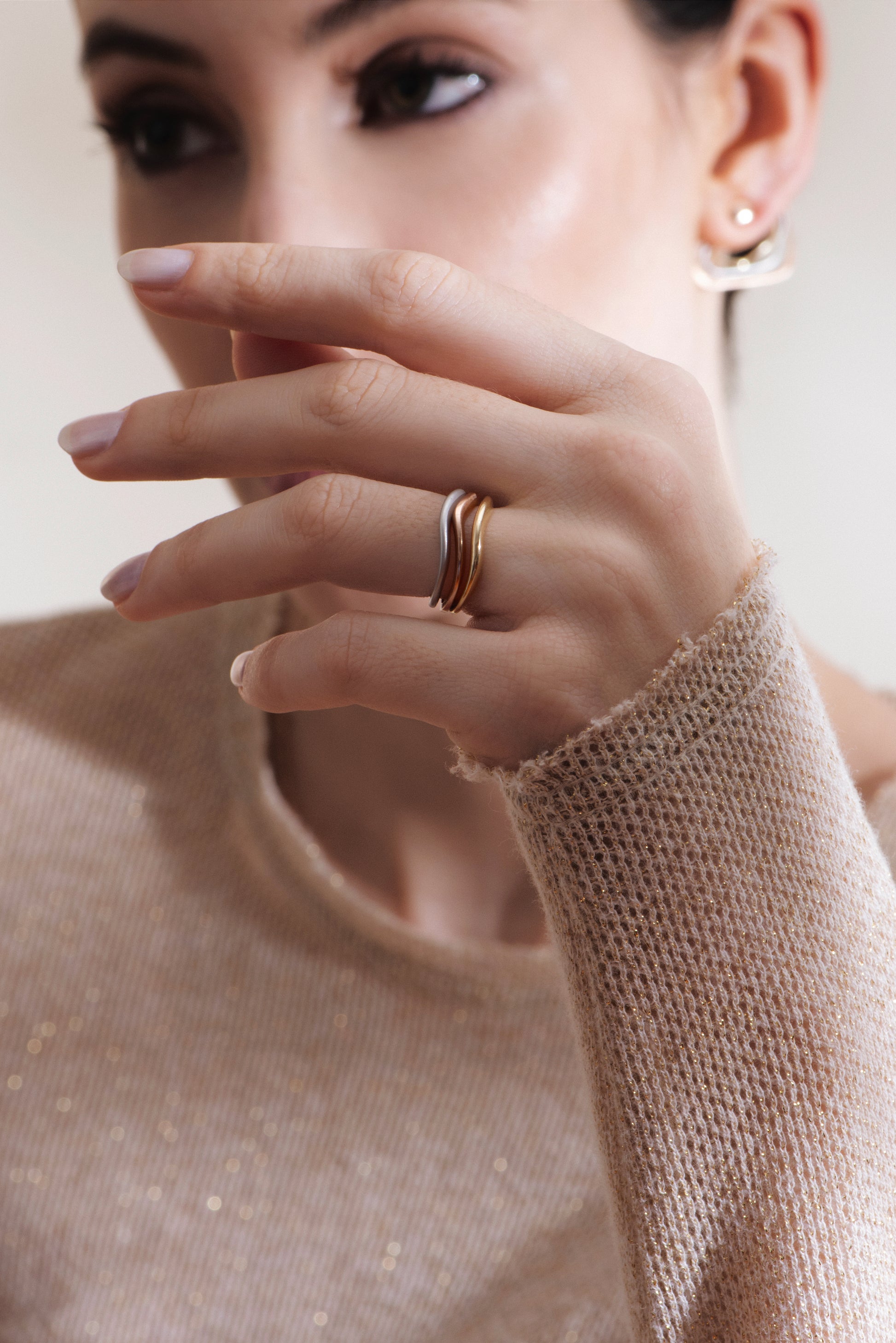 Descubra a elegância incomparável do nosso anel de camadas triplo em ouro 18k. Com um design único e sofisticado, ele é a escolha perfeita para quem deseja destacar-se com estilo. Feito com ouro de upcycling , este anel simboliza luxo e durabilidade. Perfeito para presentear ou para realçar a sua própria beleza.