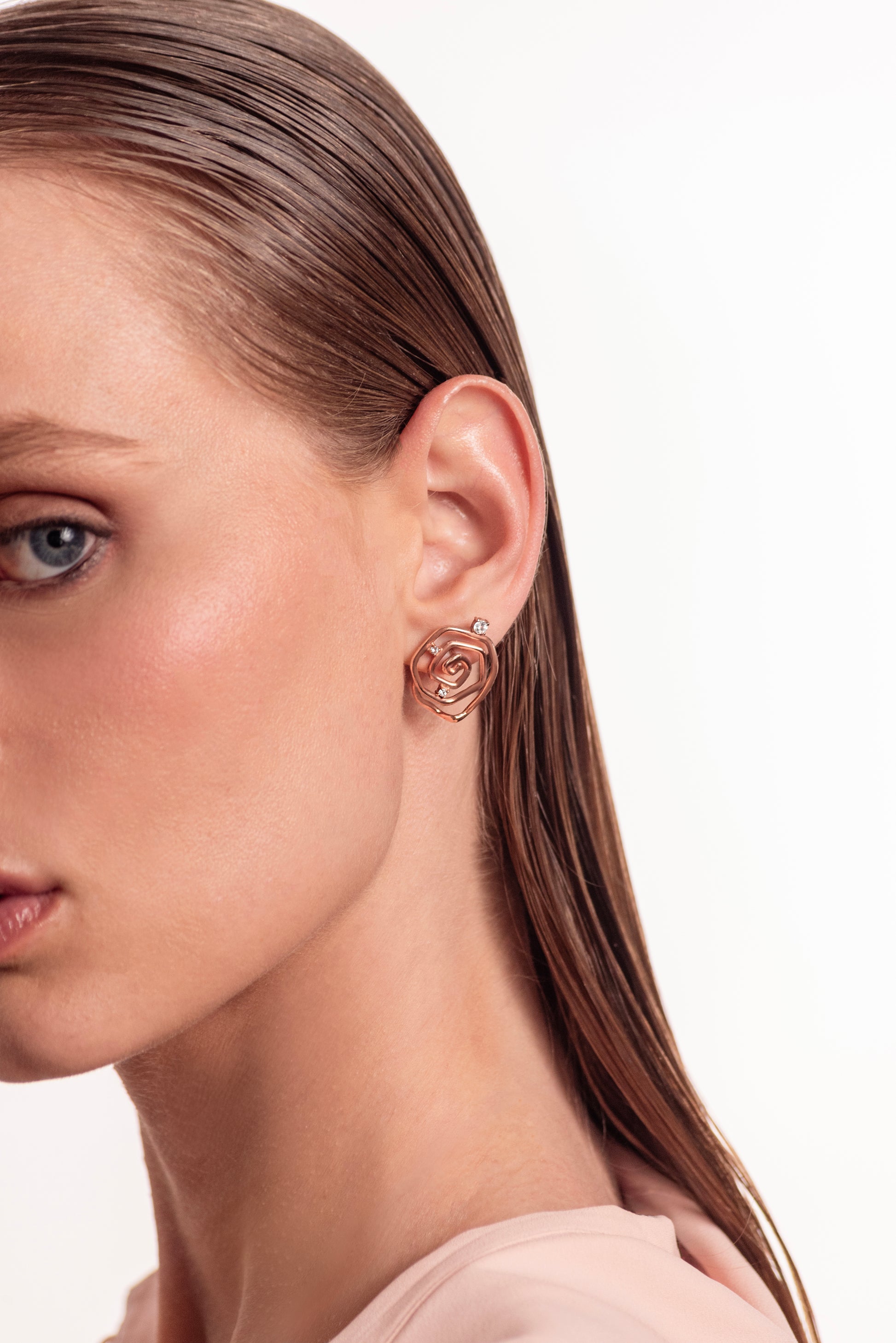 Brinco Botão Efêmera Rosé