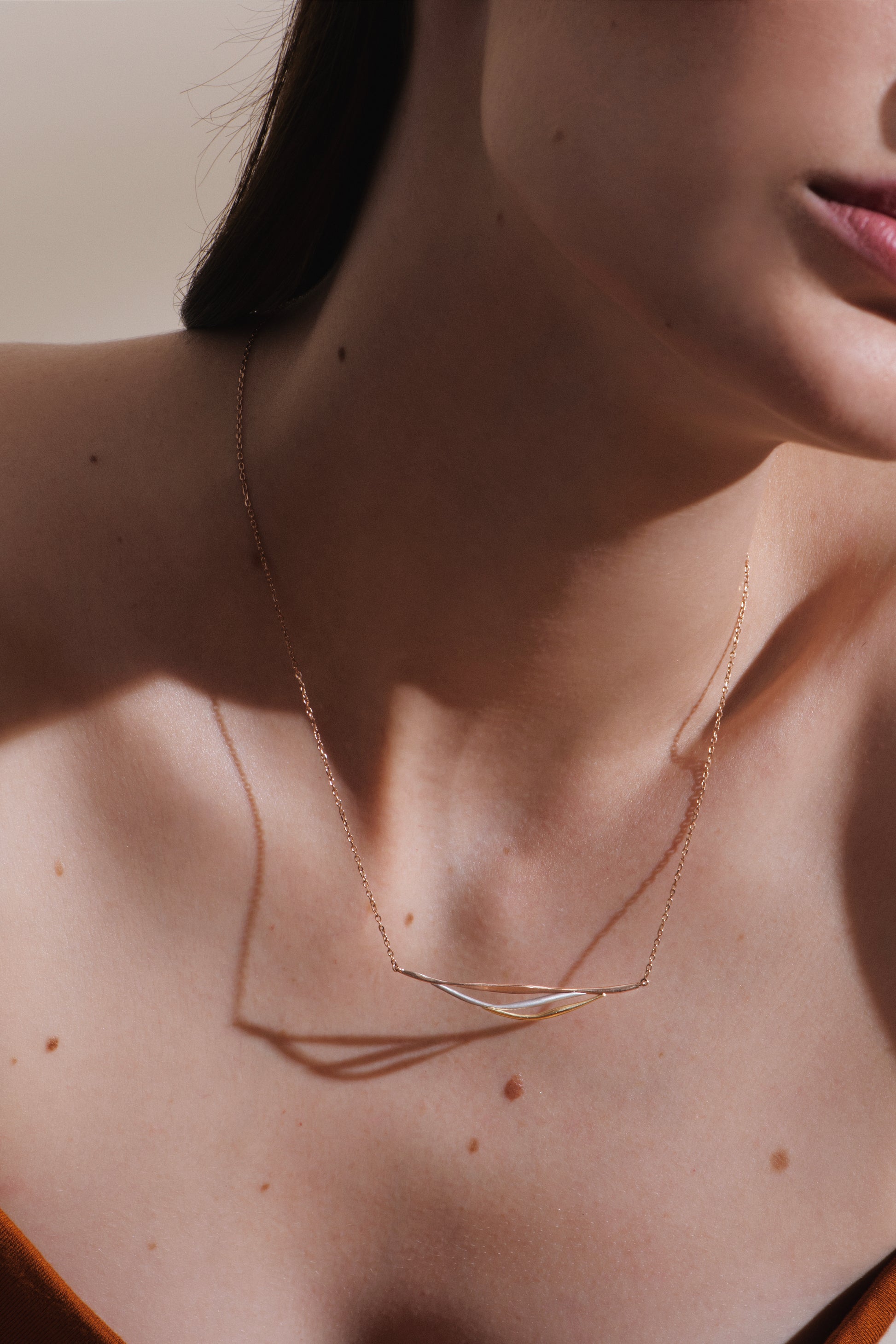 Desafiando essência da estética minimalista, o chocker camadas traz uma inconfundível delicadeza, ao mesmo tempo que é carregado de força e personalidade. Uma metáfora das camadas do solo com as nossas camadas mais profundas